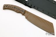Da Choppa is designed with chopping prowess, and light weight carry in mind. The RMJ rendition of this classic design makes for a terrific all around blade. At 12" overall, featuring a 7 3/8" blade made from 80CRV2 Carbon Steel and weighing in at a svelte 10.5 ounces, this is a knife for any campsite, hike or outdoor adventure.