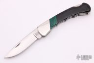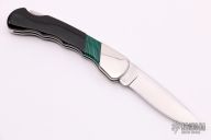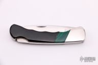 The Buck Duke features a drop point blade with nail nick for opening. The handle is comprised of a nickel silver frame with buffalo horn and malachite scales. Has some light scratches, otherwise excellent condition. Includes box and papers.