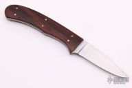 This Working Hunter by Corbet Sigman features a satin finished blade, .120" blade stock and .765" blade depth, full tang construction. The handle has cocobolo scales with brass pins. Has some scratches and minor oxidation, otherwise good condition.