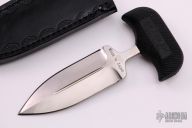 This push dagger by Cold Steel features a satin finished double-edged blade, 3/16" blade stock and 1 1/4" blade depth, hidden tang construction. The handle is rubber. Comes with a black leather sheath. Good condition. Excellent Condition.