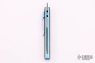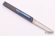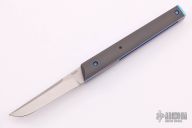 This Chunky by Richard Rogers features a blasted kwaiken style blade with swedge. The handle is comprised of tumbled and milled titanium scales over anodized titanium liners and end cap/backspacer. The anodized titanium pocket clip is positioned for tip down carry, with hidden screws. Includes COA dated Feb 2016. Excellent condition. Comes with original tube.
