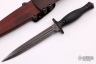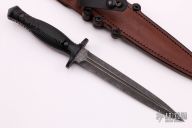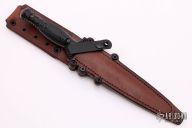 This V14 Dagger by Les George features a double-edged acid tumble finished blade with fullers, .236" blade stock and .905" blade depth, full tang construction. The handle has milled and black cerakoted titanium scales. Comes with a brown leather sheath by Chattanooga Leatherworks. New from maker. Comes with a zippered case.