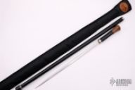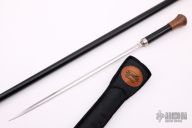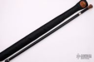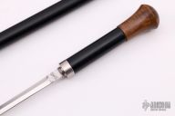 This sword cane by Burger Knives features a double-edged 17" blade with a hand rub satin finish, .187" blade stock and .550" blade depth. Wooden ball on the end of the carbon fiber shaft. Overall length of the cane is 36" with the extension, 23" without, Excellent condition. Comes with cloth case. Very cool piece.