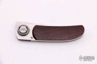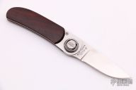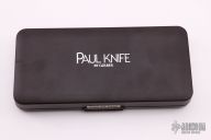 This Paul knife was part of the first run of Paul knives Gerber ever manufactured. This folder has an axial locking mechanism. Has wood scales. Comes with original box.  Inside liner of the box is damaged however the knife is in Excellent condition.