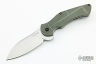 The Kershaw Junkyard Dog II is a Tim Galyean design, it features a fine bead blast blade with false top edge. Easily opened via the Flipper system on the spine. The handle has green G-10 scales with a textured finish, stainless steel liners and tip down carry stainless steel clip. Nice detent, lockup and blade seating. Comes with original box and papers. Has some light oxidation spots on the blade, a few scratches on the clip, otherwise good condition.