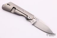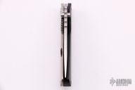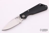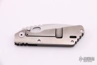This PT CC by Mick of Strider Knives features a tumble finished drop point blade with thumb hole, dual thumb studs and notched thumb rest. The handle is comprised of a contoured black G10 show side and backspacer with a contoured and tumbled titanium lock side. Lanyard hole in pommel. Excellent condition.