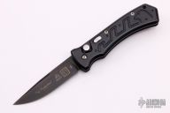 This SERT side opening automatic by Al Mar is from the first production run from Al Mar Knives. Black coated plain edge blade. Black aluminum handle with tip up clip and safety. Has some scuffs and scratches, has been used and carried, otherwise good condition.