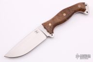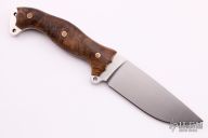 This Custom Shop Nano Fusion Badger Attack from the Busse Combat Knife Company features a satin finished blade with .208" blade stock and 1.564" blade depth, full tang construction. The handle has wood scales with red liners, extended tang with lanyard hole. Excellent condition.
