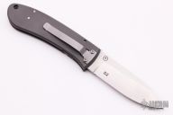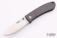 This Folding Hunter features a satin finished drop point blade, notched thumbrest and single checkered thumbstud. The handle has a titanium frame and a stonewashed pocket clip, tip down carry, titanium inlaid liner. Nice detent, lockup and blade seating. Excellent condition.