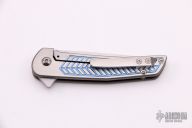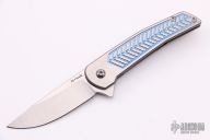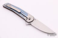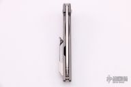 This Mini Scout Flipper by Alliance Designs features a hand rub satin finished blade. The handle has a milled and two-tone anodized titanium frame with a titanium tip up clip. Rides on bearings, nice detent, lockup and blade seating. Nice detent, lock up and blade seating.  New from Maker.