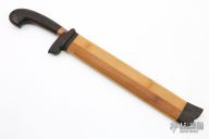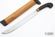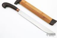 This Golok by Paul Cooper features a satin finished blade with .181" blade stock and 1.304" blade depth, hidden tang construction with a wenge wood grip and copper collar. Comes with a bamboo and Wenger wood sheath. New from maker.