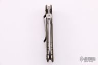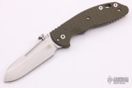 This XM Slippy by Hinderer features a stonewashed sheepsfoot 20CV blade. The handle has green G-10 scales, tumbled titanium liners, stainless steel spring, lanyard hole, titanium clip. Excellent condition. Comes with original box and tools.