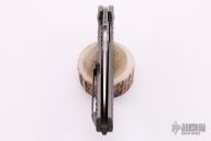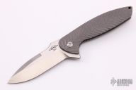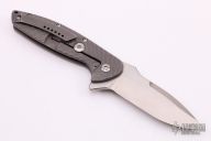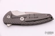 The Nitro Mini flipper from Peter Carey features a stonewashed, 20CV blade with satin finished flats. The handle consists of titanium that has Mr. Carey's easily recognizable machined pattern on the outside and milled pockets in the inside to reduce the weight of the knife, making this a very EDC friendly knife at less than 5 ounces. The blade is centered when closed, flips very well on caged stainless steel bearings, and locks up with no play. Very crisp detent. Titanium pivot screw, Hinderer style lockbar stabilizer, backspacer, and pocket clip that is positioned for tip up carry. These knives are 100% made in the USA. Comes with velcro case. Excellent condition.