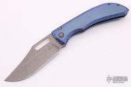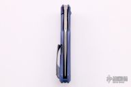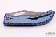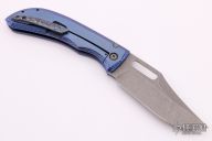 This Corsair by Patrick Doyle features a blasted blade with false top edge and long thumbhole. The handle has anodized and stippled titanium scales, orange peel finished edges and backspacer, timascus tip up clip. Anodized titanium hardware. Comes with zippered case and COA dated 12/3/16. Excellent condition.