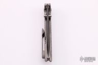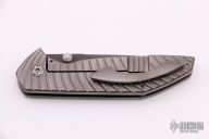 This Custom Ice Lite by Brian Efros features an acid tumbled blade with dual thumbstuds. The handle has a milled and blasted titanium frame and a matching tip up clip with hidden screws. Rides on bearings, nice detent, lockup and blade seating. Excellent condition.