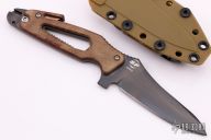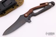 The Delta fixed-blade model is a rugged, lightweight combat/utility knife perfect for virtually any mission. Like its folding cousin, the Delta fixed features a Crucible CPM® S30V® steel blade, renowned for strength and edge retention, only its blade is coated with a layer of rust-proofing to protect it from corrosion. The frame incorporates many of the same practical tools as the folder-screwdriver, cord/belt cutter, and self-seating wrench-but also sports a cutter that cuts through 12-gauge wire and the flex-cuffs used in many military and law enforcement applications. Micarta™ grip scales cover its steel grip/tang for a secure hold in your hand, and an injection-molded sheath maintains a secure hold of the knife when not in use. Excellent Condition.