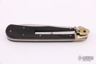 This leverlock auto by Hubertus features a spear point blade, nickel silver bolsters, buffalo horn scales, and brass liners and pins. Opens with a nice snap. Very fast opening. Has some patina and light scratches, otherwise excellent condition.