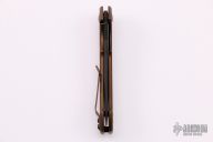 A striking difference when compared to the previous edition is the type of steel. After all, this knife is made from ZDP189 steel. A stainless type of steel that is known for its exceptional hardness and how well it retains its sharpness. Definitely a type of super steel. The standoffs between the two handles are stylishly coated in black. Just like the blade. The handle has been enhanced with a coyote-tan DLC coating. The geometric design on the presentation side of the knife looks great and offers you enough grip!