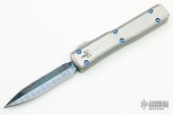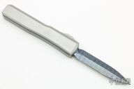 This Ultratech OTF automatic has a hand ground double-edged blued Vegas Forge Sharktooth Pattern Damascus blade. The handle has satin finished front and back and bead blast finished sides. "A.Marfione 02/2020" and s/n 004, has ringed blue hardware. Comes with a nylon zippered case, original box and COA. Excellent condition.