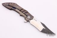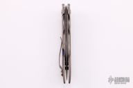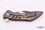 This LC17 flipper by Ed Cope features a two-tone tanto recurve blade with flipper. The handle has an anodized titanium frame with matching tip up clip. Rides on bearings, nice detent, lockup and blade seating. Comes with a zippered case and a COA dated August 27, 2020. Excellent condition.