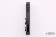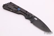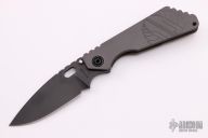 This SMF by Mick Strider features a black blade with thumbhole and notched thumbrest. The handle has grey aluminum and flamed titanium frame and tip up titanium clip, has black hardware and an anodized titanium lockbar stabilizer. Notches on thumbrest, rear of handle. Nice detent, blade seating and lockup. New from Maker!