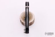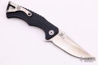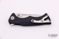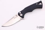 This Small Tighe Fighter from Brian Tighe features a stonewashed blade with swedge, dual thumb studs, notched thumbrest and flipper. The handle is comprised of a black aluminum frame over a black aluminum notched backspacer. Stainless steel tip up pocket clip with ceramic ball inset. Has been resharpened, otherwise good condition. Includes original box and papers. S/N 0500.