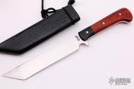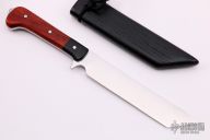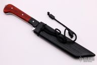 The Toe by Tim LeGare features a satin finished blade with .172" blade stock and 1.228" blade depth, full tang construction. The handle has black paper micarta bolsters, padauk wood scales, stainless steel pins. Comes with a Red Oak sheath finished with a black poly blend stain and black paracord. Comes with COA and original box. New from maker.