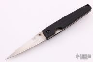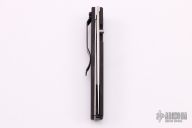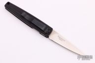 Boguszewski design folder by Benchmade with satin finished blade, single thumbstud. Black coated aluminum handle with linerlock. Tip down carry black stainless steel clip. Excellent condition. Comes with a zippered case. New old stock from another dealer.