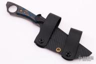 This Riptide 2.0 by Craig Falls features a hand rub satin finished blade with nice hamon, .164" blade stock and .974" blade depth, full tang construction. The handle has black/blue fat carbon scales with white liners, extended tang and lanyard hole. Comes with a kydex sheath with belt loops and COA dated 04-20. New from maker.