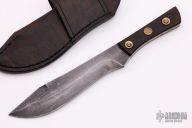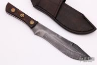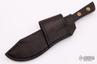 This Throwing Bowie by Zac Camacho features a clip point recurve blade with false edges, .196" blade stock and 1.484" blade depth, full tang construction with riveted leather scales. Comes with an ambidextrous brown leather cross draw sheath. Comes with COA dated 4/19/18. Excellent condition.