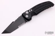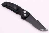 This EX-A01 by Hogue Knives is an Allen Elishewitz design, it features a black tanto partially serrated 154CM blade with notched thumbrest. The handle is black aluminum, tip up or down reversible black stainless steel clip. Has safety. Comes with Hogue box and papers. Excellent condition.