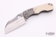 This custom Griffon folder by Kingdom Armory features an acid tumbled blade. The handle is comprised of tumbled titanium frame and clip, ivory paper micarta scale, tumbled titanium backspacer. Includes Otterbox case. Nice detent, lockup and blade seating. Has a few light scuffs, otherwise excellent condition.