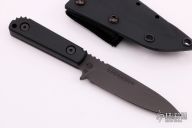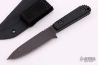 This Tricon Fixed Blade from Strider Knives features a black drop point blade with notched thumbrest. .202" Blade Stock. .926" Blade Depth. The handle is comprised of black G10 scales with lanyard hole over full tang construction. Includes kydex sheath. New from maker.