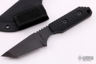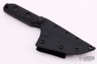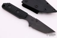 This knife by Strider Knives features a black coated tanto style blade with notched thumbrest, .203" blade stock and 1.238" blade depth, full tang construction. The handle is comprised of black G-10 scales with MEFP. Lanyard hole in pommel. Includes kydex sheath. New from maker.