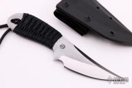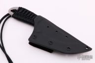 This knife by Mick Strider features a two-tone blade with false top edge, .217" blade stock and 1.478" blade depth, full tang construction with paracord wrap. Comes with kydex sheath. New from maker.