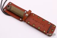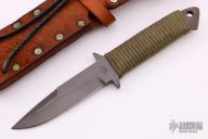 This Model 98P Victory-P by Barry Dawson features a bead blasted blade with a sharpened top edge, .252" blade stock and .975" blade depth, full tang construction. The handle has paracord wrap. Comes with a brown leather sheath with belt loop. Excellent condition.