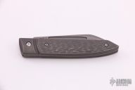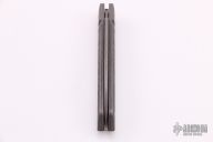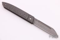 This knife has a tumbled wharncliffe blade with milled fullers. The handle has a tumbled titanium frame with jigged titanium covers and a tumbled titanium spring. Has half-stop, flush in all positions. Comes with original box and stickers. Excellent condition.