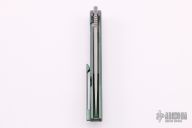This Smoke Ts1, from Boos Blades, features a tumbled drop point blade with elongated thumb hole and flipper. The handle is comprised of tumbled anodized titanium scales with a matching tip up clip over a single barrel spacer. Has been used and carried, has scuffs and scratches, needs to be sharpened, otherwise good user condition. Nice detent, lockup and blade seating.