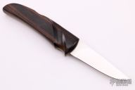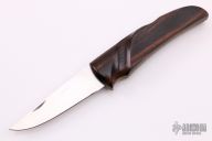 This lockback folder from Seizo Imai features a hand rubbed satin finished blade with nail nick. The handle cocobolo scales, brass liners. Light scratches on blade, otherwise excellent condition. Comes with a zippered case.