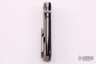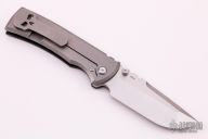 This Chaves Ultramar Redencion drop point features a satin finished blade with the Chaves logo. The handle is made up of black G-10 presentation side, stonewashed titanium lockside, skull pocket clip (positioned for tip up carry), and matching titanium backspacer. Nice detent, lock up and blade seating.  New from Maker!