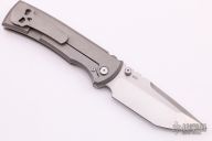 This Chaves Ultramar Redencion Tanto features a satin finished blade with the Chaves logo. The handle is made up of tumbled titanium, skull pocket clip (positioned for tip up carry), and a matching titanium backspacer. New From Maker!
