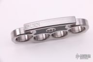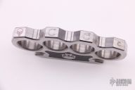 This Custom steel Knuckle by Burn Knives is made from .495" thick stainless steel with carbon fiber inlays. Has some scratches, otherwise good condition.