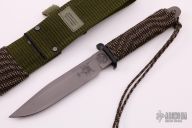 This EK knives SOF Ranger Commemorative Knife features a bead blast finished high carbon stainless steel double-edged clip point blade. .187" blade stock 1.251"Blade Depth. Black coated brass double guard with a cord wrapped handle. Hidden tang construction with a lanyard hole at the butt of the knife. Nice classic feeling knife. Comes with a Nylon sheath and original box and COA. This knife has a few scuffs on the blade from the sheath, otherwise excellent condition. This knife is one of 500 in this configuration.