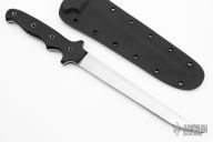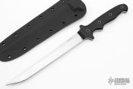 This Vorpal by Bobby Branton features a hand rub satin finished tanto blade with full tang construction. .187" Blade Stock. 1.009" Blade Depth. The handle features black G-10 Scales. Includes a kydex sheath. Has a few light scratches, otherwise excellent condition.