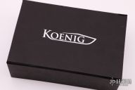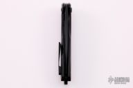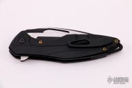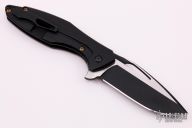 This Arius by Koenig knives features a black blade with satin finished flats, thumbhole and flipper. The handle has a nicely contoured black titanium frame with a matching tip up clip and backspacer. Has ceramic bearings and a ceramic detent ball. Nice detent, lockup and blade seating. Comes with original box and COA dated 5/29/2017. Excellent condition.