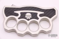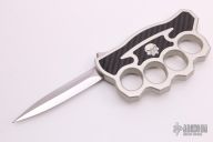 This Custom K-Razor by Burn Knives features a mirror polished double-edged blade with satin flats. The handle has a 7075 alloy aluminum knuckle frame with 3K carbon fiber inlays. Comes with a COA dated 12-20-19. Has a couple light scratches, otherwise excellent condition.