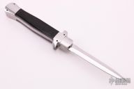 "When I was 9 years old my Dad gave me a 6 inch Rizutto with a broken spring. I can remember trying to stick a coat hanger wire into it trying to fix it but to no avail. I later took the blade out and stuck it into one of those Taiwan switchblade combs because I wanted it to work so bad but I ended up destroying both of them in the process. When I was a kid I loved going to flea markets and gun shows looking for switchblades and butterfly knives that I've always liked. Even now as an adult I love them all the more. I like most all knives but have always had a thing for the classy Italian stiletto's. Its been a blast to meet up with other collector's on the internet and also learning the mechanics from makers like Don Hall, Arlin Walker, Bill McHenry, Reese Weiland, Jerry Rados, and George Cameron to name a few. I currently reside in Ohio where I am now a full-time knifemaker with a modest machine shop. I also restored antique stiletto's professionally for antique dealers for several years before becoming a custom knifemaker."