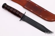 You may know us from our high quality military, hunting, sporting, all-purpose utility, and outdoor survival knives. We offer hundreds of quality cutlery products and accessories sold through independent retailers, distributors, mail order catalogs and our online knife store. We've been making knives since 1898 and each knife undergoes our unique manufacturing processes and testing to ensure corrosion resistance, strength, edge holding ability, and an out-of-the-box razor sharp cutting edge. On December 9, 1942, after the start of World War II, KA-BAR submitted a knife to the United States Marine Corps in hopes that it would become general issue to that branch of the military. Working with the Marine Quartermaster Department the original design was revised and production began of an improved fighting and utility knife for the Marines. As the War escalated, the USMC KA-BAR knives became so well recognized for their quality and so abundant in number that "Kabar" became the name by which many referred to this knife pattern, regardless of whether the knife was manufactured at the actual KA-BAR facility. The USMC KA-BAR was adopted by not only the Marines, but also the Army, Navy, Coast Guard and Underwater Demolition Teams.