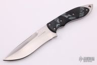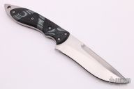 This Fighter by Neil Blackwood features a satin finished spear point blade with a notched thumb rest and a full tang construction. .262" Blade Stock. 1.515" Blade Depth. The handle features G10 Scales. Excellent Condition.