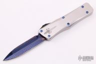 Combat Troodon Double Edge Spike Grind-Blued Mosaic Damascus - Stainless Steel Frame